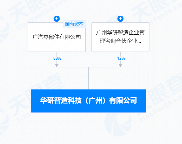 近日,华研智造科技(广州)有限公司成立,注册资本为5000万元,经营范围包含:物联网技术服务;电子元器件零售;汽车零配件零售;智能基础制造装备制造;汽车零部件及配件制造等。股权穿透显示,该公司由广汽集团旗下广汽零部件有限公司,及广州华研智造企业管理咨询合伙企业(有限合伙)共同持股。