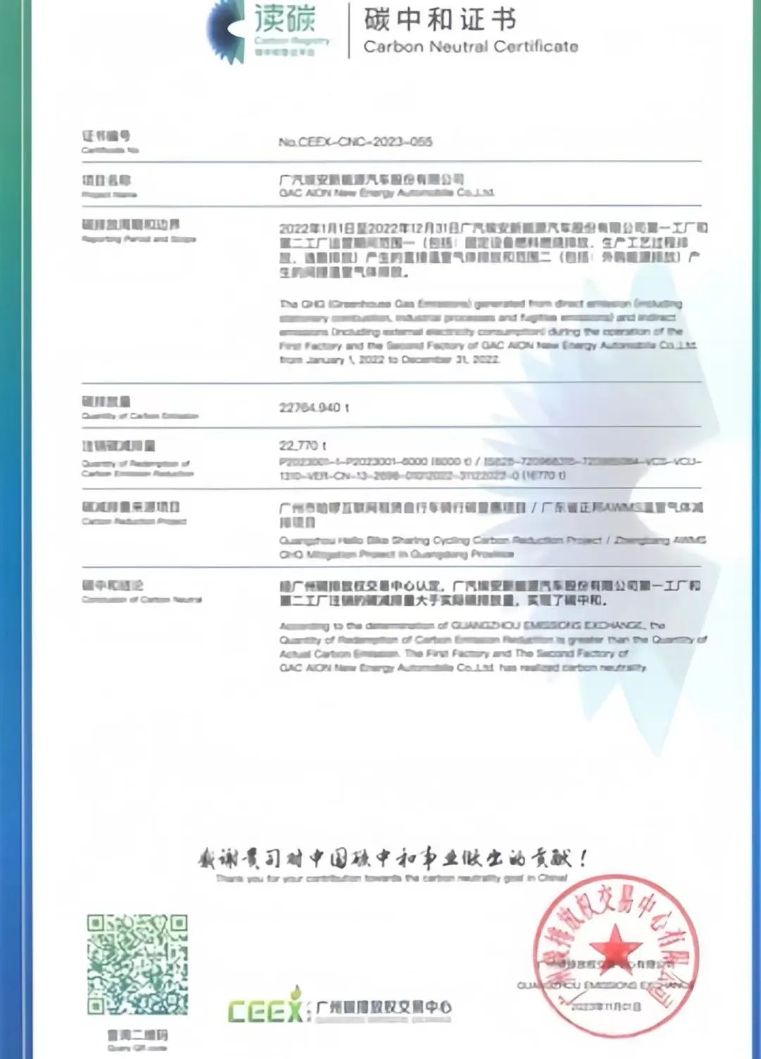 碳中和认证证书