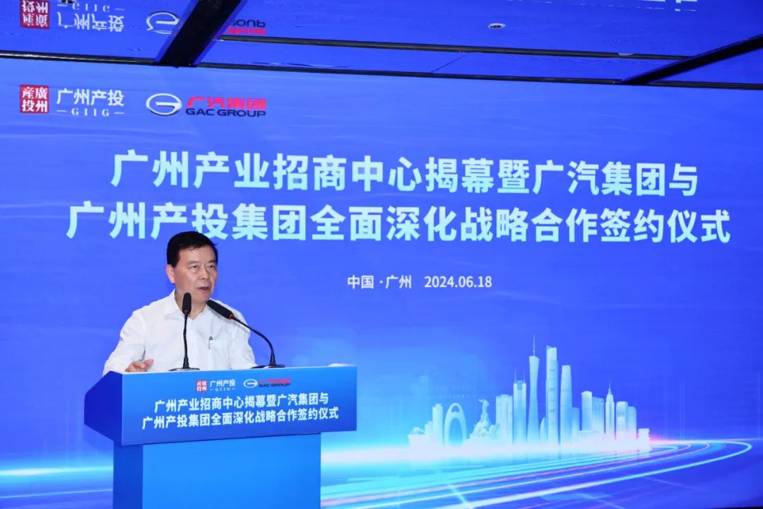 6月18日,广汽集团与广州产投全面深化战略合作签约仪式举行。广州市副市长江智涛,市国资委党委书记梁凌峰,市商务局副局长张海波出席仪式并见证。广汽集团党委书记、董事长曾庆洪,广州产投党委书记、董事长罗俊茯分别致辞并代表双方签约。广汽集团总会计师王丹、副总经理閤先庆,广州产投全体领导班子成员及两家企业相关代表和媒体记者参加仪式。