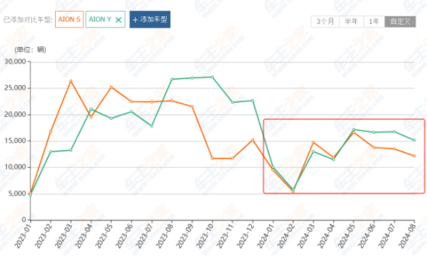 但随着网约车市场逐渐饱和,AIONY和AIONS在今年均出现了不同程度的下滑。根据车主之家数据,AIONY和AIONS今年1-8月累计销量分别同比下滑了22.25%、39.14%。