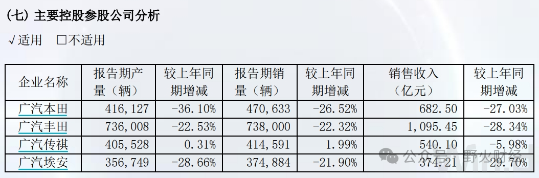 按照汽车品牌细分,广汽丰田、广汽本田、传祺和埃安,销量全线下滑。收入同步下滑,广汽本田和丰田收入下滑27%、28%,新能源品牌埃安销量也下滑近三成,说明其在市场竞争力堪忧。