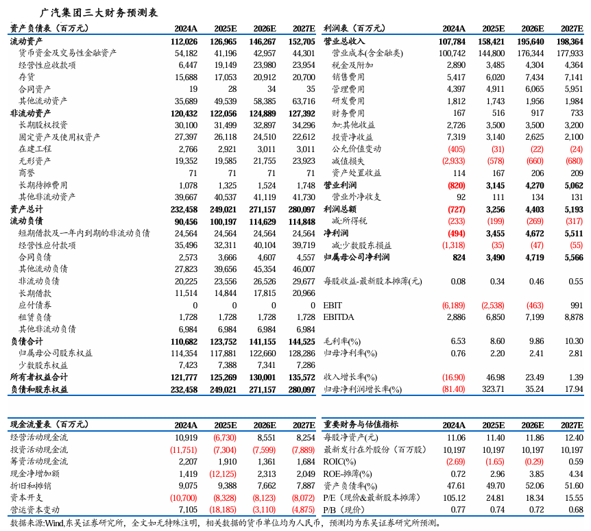 1)营收层面:销量环比大幅改善下公司Q4营收改善明显。公司Q4自主品牌销量同环比均改善,其中广汽乘用车/广汽埃安Q4批发销量分别为13.76/14.81万辆,同比分别+24.4%/+14.8%,环比分别+ 56.2%/+47.5%,其中埃安RT贡献较多销量增量;广汽自主Q4 ASP为11.6万元,同环比分别-12%/-23%。2)毛利率:公司Q4销售毛利率为5.1%,同环比为-2%/-0.1%。3)投资收益:合资品牌Q4销量同比仍下滑,其中广汽本田/广汽丰田Q4销量分别为16.15/22.01万辆,同比分别-21.1%/-16.7%,环比分别+59.5%/+21.0%。广本/广丰24H2及利润分别为-4.6/19.2亿元,单车盈利分别为-0.2/0.5万元。由于公司12月转让参股公司巨湾部分股权,增加部分投资收益,因此公司Q4投资收益总额为36.7亿元,同环比分别+167%/+854%。4)最终公司Q4实现归母净利润为7.0亿元(2023Q4为-0.82亿元,2024Q3为-13.96亿元)。