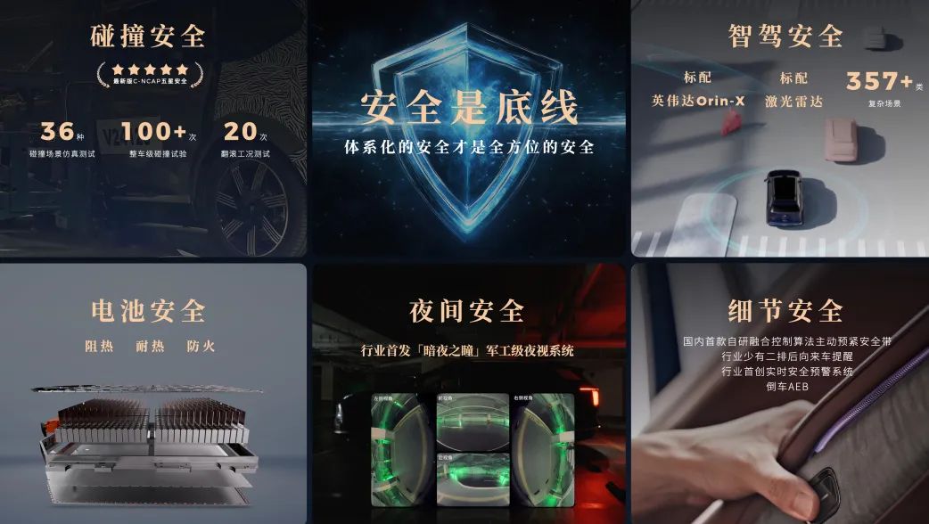 对广汽而言,安全从来都不只是一项配置,而是必须坚守的底线。广汽旗下高端品牌广汽昊铂全新旗舰车型——昊铂HL也于当日正式上市。昊铂HL带来5大体系化安全,其中在碰撞安全方面通过36种碰撞场景仿真测试,以超强泰坦笼式钢铝混合车身构筑安全堡垒;在智驾安全方面,英伟达Orin-X高算力平台结合激光雷达多传感融合感知方案做到智能先知;在电池安全方面,拥有阻热、耐热、防火三重防护机制;在夜间安全与细节安全方面,昊铂HL夜视系统与主动预紧安全带等功能共同守护出行。
