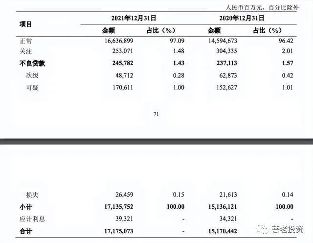跟大多数银行一样,农行的不良率下降明显,从前年的1.57下降到现在的1.43,虽然比不过2019年底,但是总体的不良率下降明显。当然跟大多数银行一样,农行资产质量指标下降的根源就是不良贷款的减少。