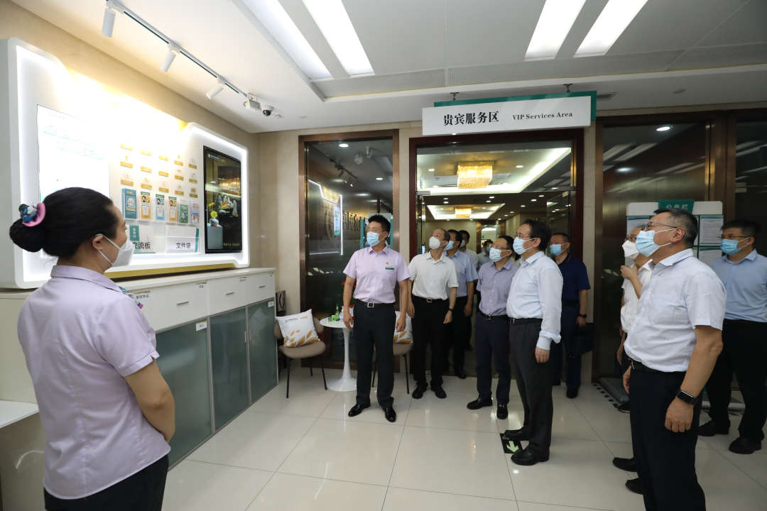 ▲谭天星一行参观农业银行网点“浓情暖域”便民服务专区,并听取服务品牌创建情况介绍