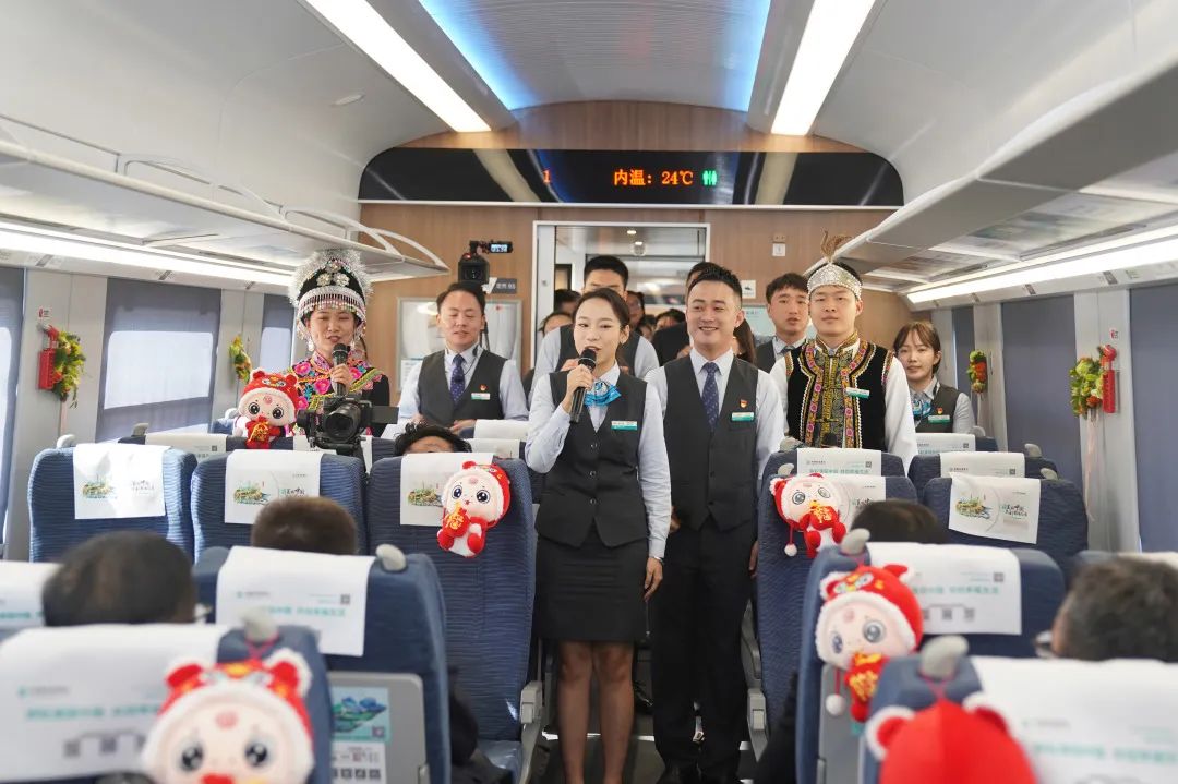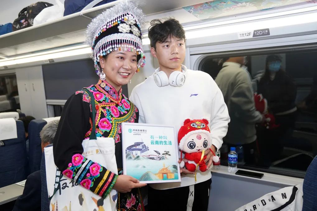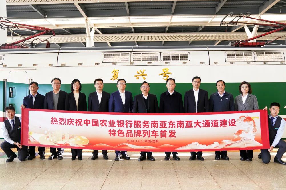 “欢迎您乘坐中国农业银行服务南亚东南亚大通道建设特色品牌列车。”在中老铁路开通运营三周年之际,中国农业银行服务南亚东南亚大通道建设特色品牌列车首发仪式在昆明南站举行。