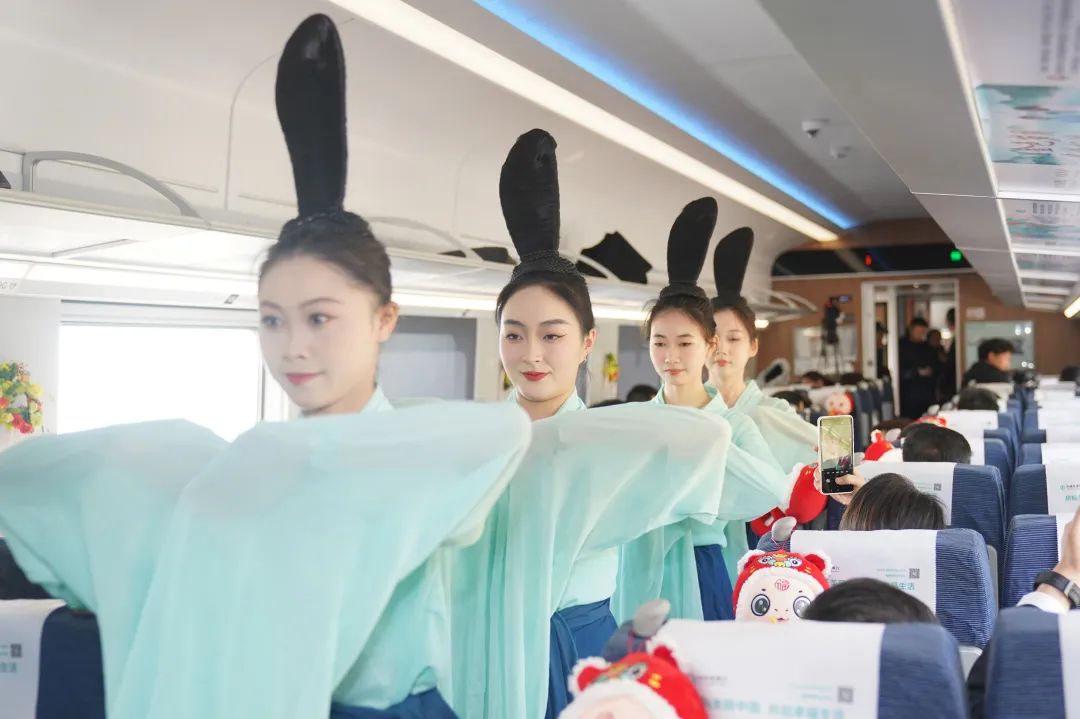 农业银行服务南亚东南亚大通道建设特色品牌列车是对共建“一带一路”倡议的积极响应,也是对中老铁路工程的真诚致敬。行车过程中,农业银行开展了生动有趣的品牌活动。在“只此青绿”舞者的表演中拉开了活动序幕,身着民族服装和行服的农行员工为乘客带来贴心的服务,载歌载舞地宣传云南丰富旅游资源和民族文化,向乘客普及金融反诈、消费者权益保护等金融知识。