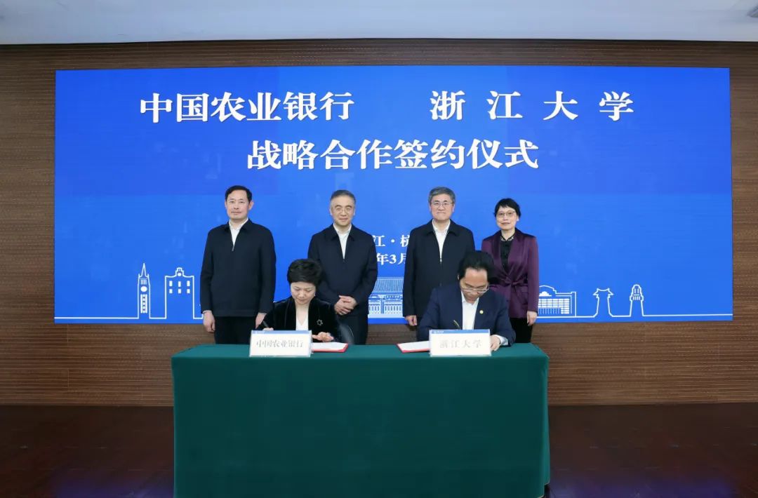3月25日,中国农业银行与浙江大学在杭州签署全面战略合作协议。农业银行董事长、党委书记谷澍与浙江大学党委书记任少波出席签约仪式。农业银行副行长、党委委员王文进与浙江大学副校长、党委常委黄先海分别代表双方签署全面战略合作协议,浙江分行行长、党委书记谭敦宇代表浙江分行与校方签署银校合作协议。浙江大学党委副书记朱慧主持签约仪式。