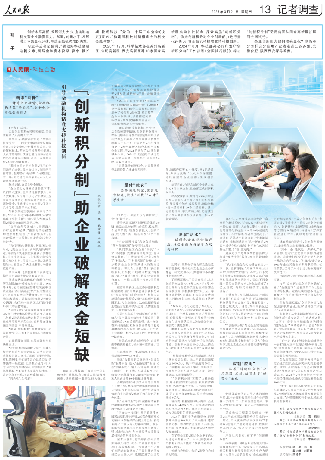 近日,《人民日报》刊发文章《引导金融机构精准支持科技创新“创新积分制”助企业破解资金短缺》,报道农业银行运用“创新积分制”,为科技型企业定制专属融资方案,着力破解企业融资难题。