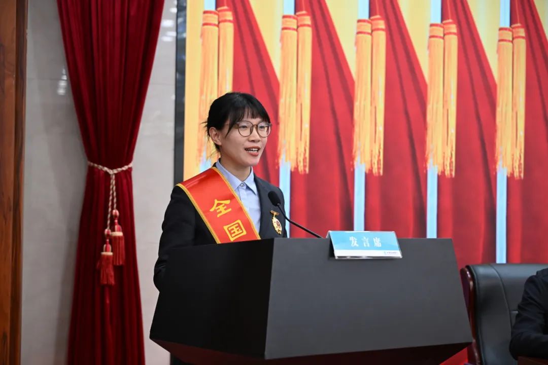 ▲四川凉山西昌支行鲁周资哈、深圳分行智慧银行建设部张康分别代表受表彰集体和个人发言,全国劳动模范、浙江瑞安仙降支行黄丽娜宣读先进模范代表倡议书(左右滑动查看更多图片)