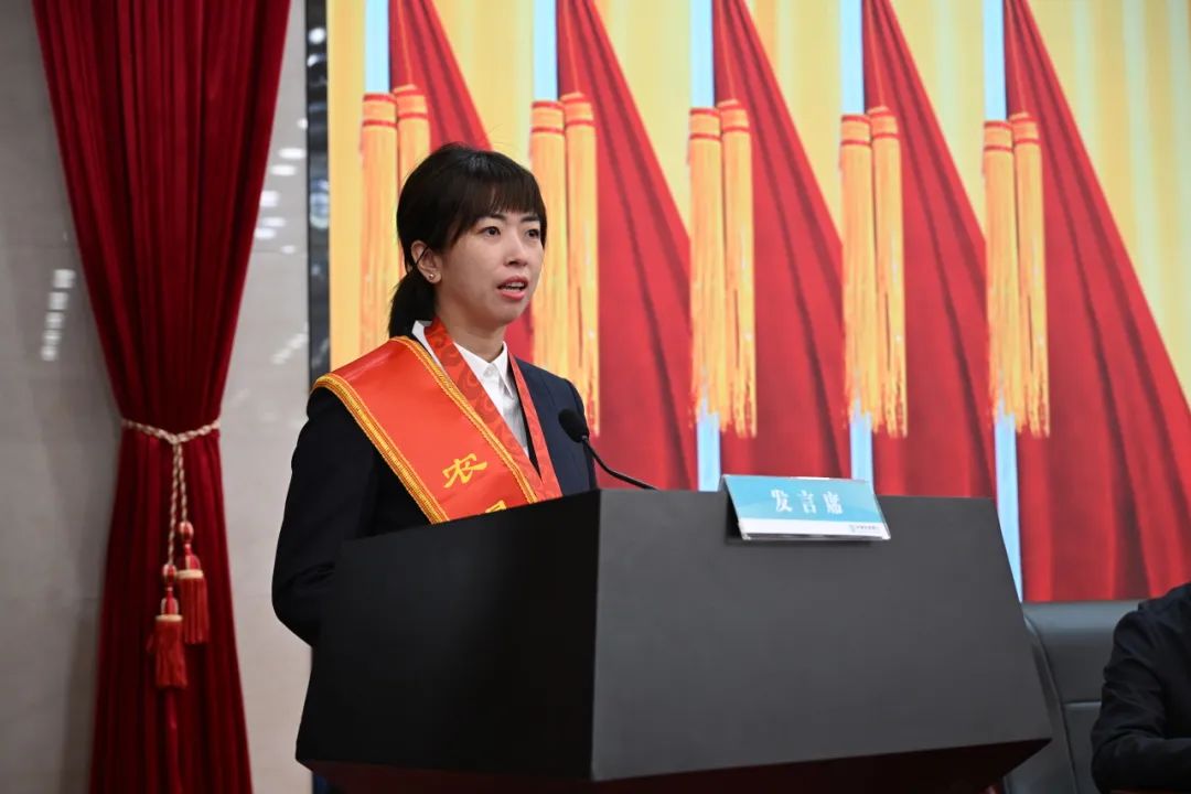 四川凉山西昌支行鲁周资哈、深圳分行智慧银行建设部张康分别代表受表彰集体和个人发言,全国劳动模范、浙江瑞安仙降支行黄丽娜宣读先进模范代表倡议书。