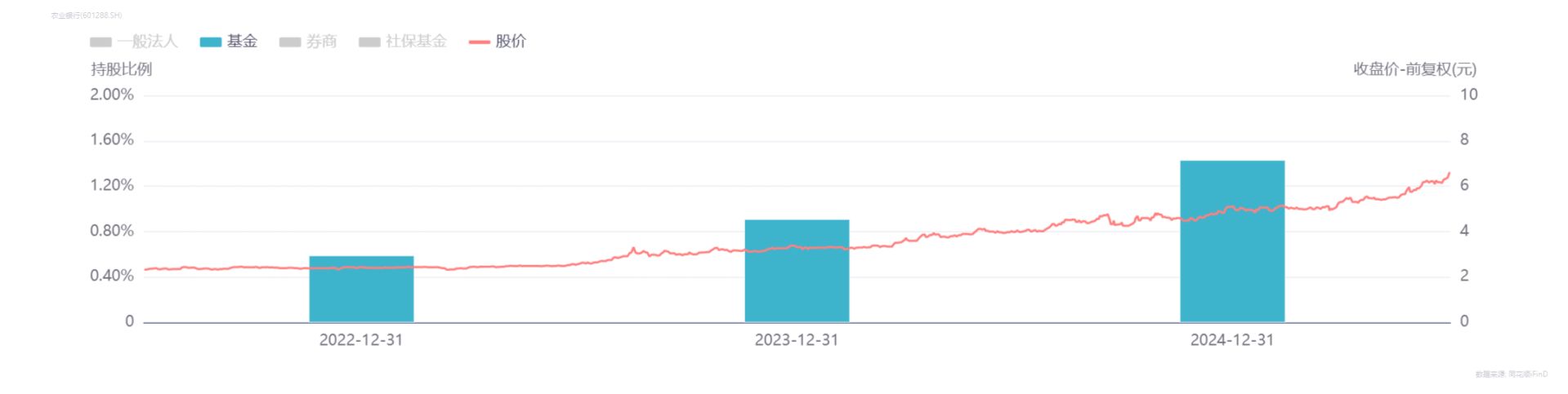 拉长时间线看,农业银行此轮上涨可追溯至2022年11月,从2.7元一路波动上涨至今,涨幅达145%。