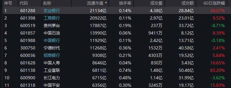 8月6日,农业银行登上A股流通市值榜首。当日农业银行股价收盘于6.62元,较上日收盘价涨1.22%,也创下农业银行A股上市以来至今最高水平。同时,农业银行在A股最新流通市值达到2.11万亿元,排名升至A股流通市值第一。