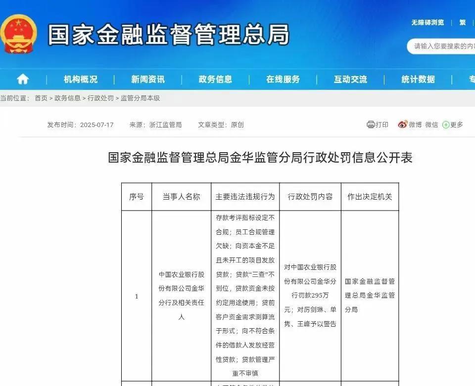 金华分行被处罚款295万元,3名管理人员同时受到处罚。这充分表明监管机构正在强化对银行业务全流程、全人员的合规管理要求。