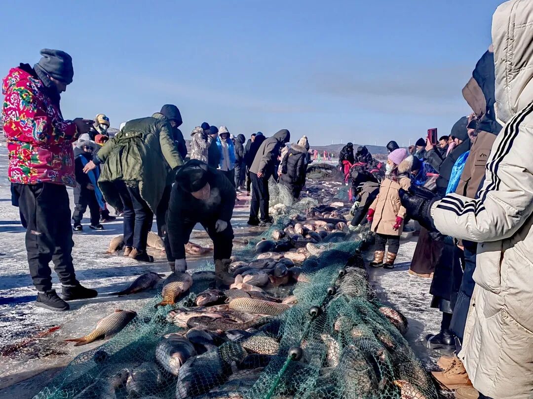 ▲内蒙古锡林郭勒多伦县冬捕活动现场