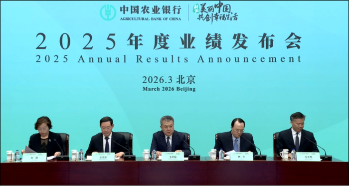 随着六大行2025年度业绩陆续披露,农业银行(01288.HK/601288.SH)也于3月30日晚召开2025年度业绩发布会,对全年经营情况进行全面总结。农业银行行长王志恒,副行长林立、王文进、王大军等出席发布会,董事会秘书刘清主持会议,发布会同步进行网络直播。