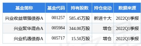 其中持有数量最多的基金为兴业收益增强债券A,目前规模为64.49亿元,最新净值1.42(4月22日),较上一交易日上涨0.07%,近一年上涨7.41%。该基金现任基金经理为周鸣丁进。