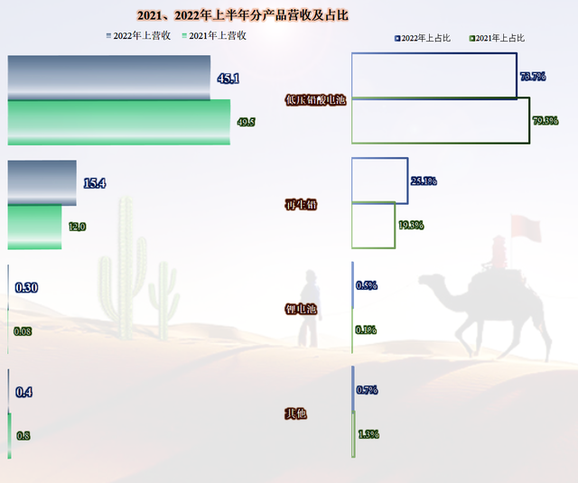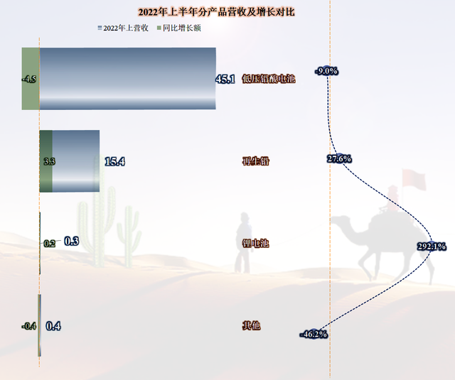 2022年上半年,骆驼股份的优势产品“低压铅酸电池”营收下降了9%,而锂电池却增长了2.9倍,“再生铅”业务增长了27.6%。