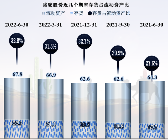 存货比年初上升了1.8亿元,但占流动资产比基本不变。与2021年上半年末比上升了近5亿元,考虑到营收同比还有所下降,存货的上升除了原料涨价外,多少也会存在滞销的问题了。