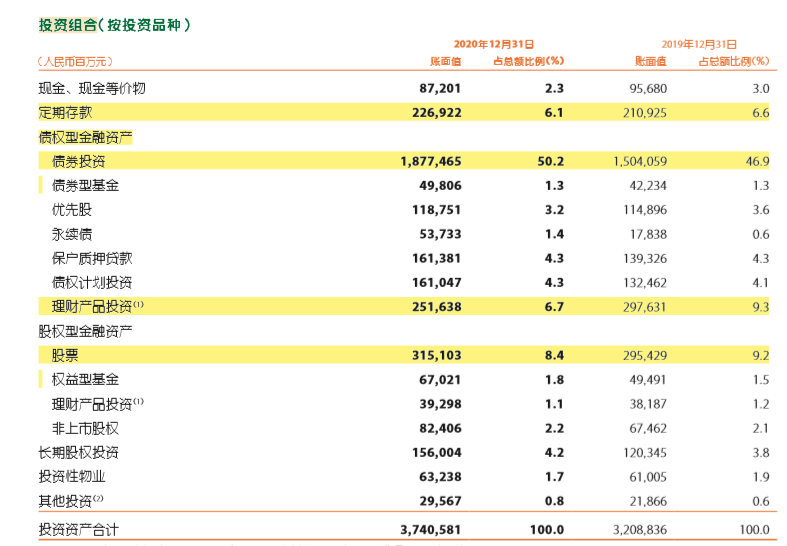 另一方面,从其年报中披露的投资组合来看,债券投资,占比最多,高达50.2%,其次是股票占比8.4%,理财产品投资6.7%,定期存款6.1%。