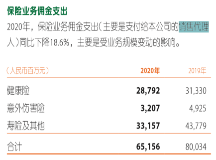 但2020年,平安的保险业务佣金支出同比明显下滑18.6%,这次承认了“主要受业务规模变动的影响”。