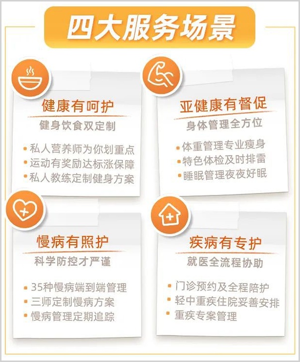 臻享RUN对应用户四大健康场景提供“三护一促”的贴身服务。具体而言:
