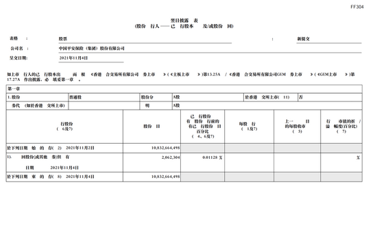 11月4日消息,中国平安公布公告,2021年11月4日耗资约1.03亿元回购约206.23万股股份。