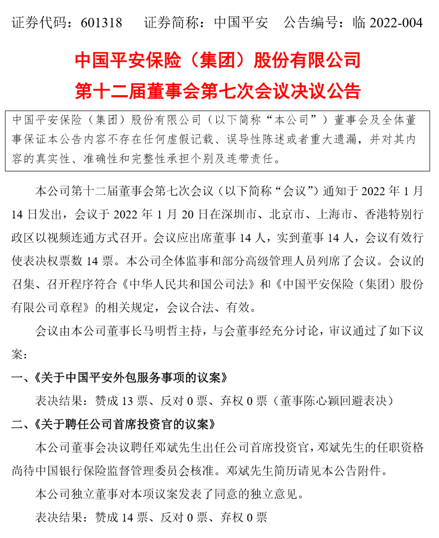 1月20日晚间,中国平安发布公告称,公司董事会决议聘任邓斌出任公司首席投资官,邓斌的任职资格尚待中国银保监会核准。