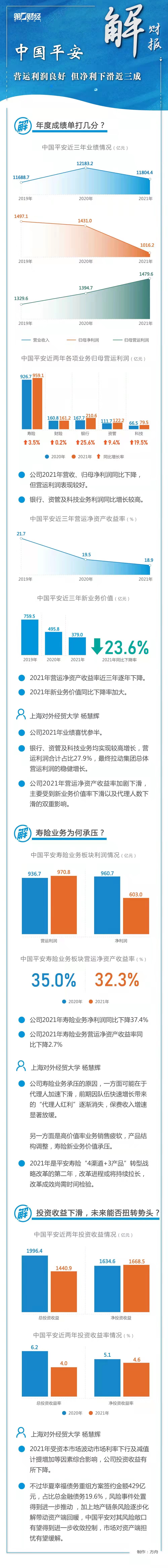 中国平安2021年度成绩单近日亮相。2021年度中国平安实现归母营运利润1479.61亿元,同比增长6.09%,但归母净利润1016.18亿元,同比下降近三成。
