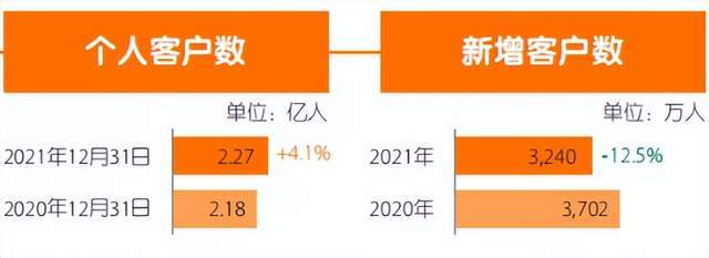 2021年,公司新增客户数为3240万人,较上年同期的3702万人减少了462万,下降12.5%。