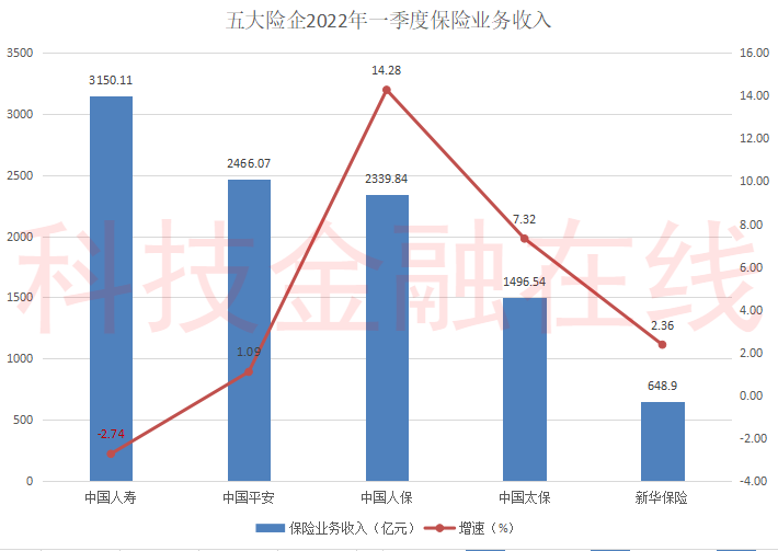 除国寿之外,其余四家上市险企的保险业务收入均实现同比正增长。