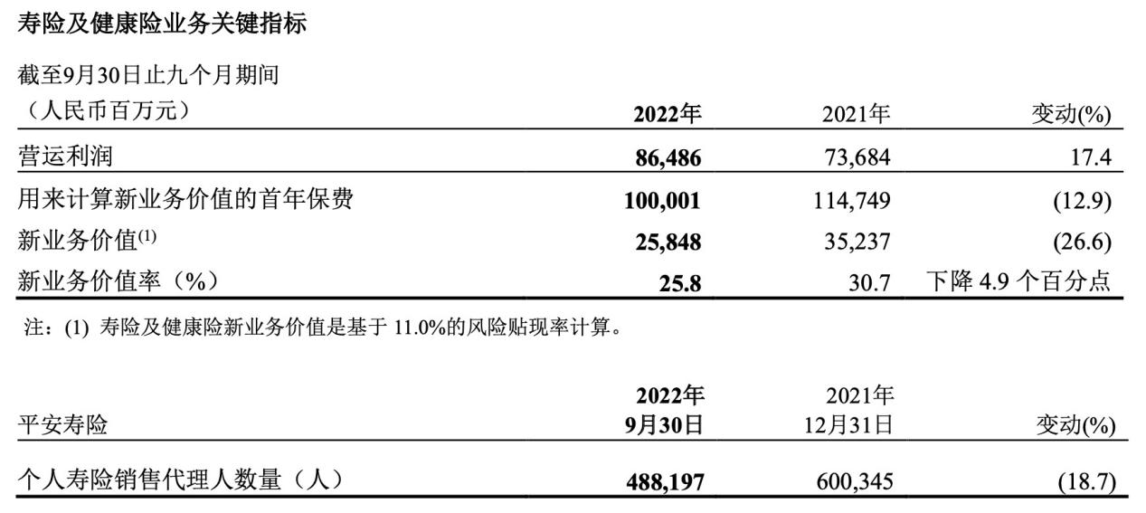 业内人士认为,保险行业负债端改革多年,当前已进入转型深化时期。2022年前三季度,平安的寿险业务实现营运利润864.86亿元,同比增长17.4%;代理人人均新业务价值同比提升超22%,队伍产能持续提升。