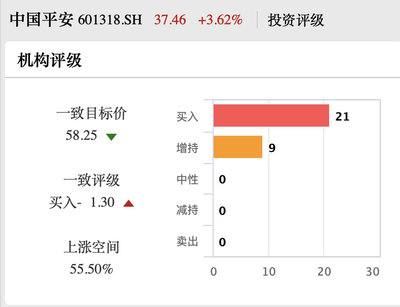 自中国平安10月26日晚发布A股险企的首份三季报后,目前已有23家券商机构发布研报并给予“买入”评级,也表明了投资机构对行业配置价值和长期发展前景的看好。