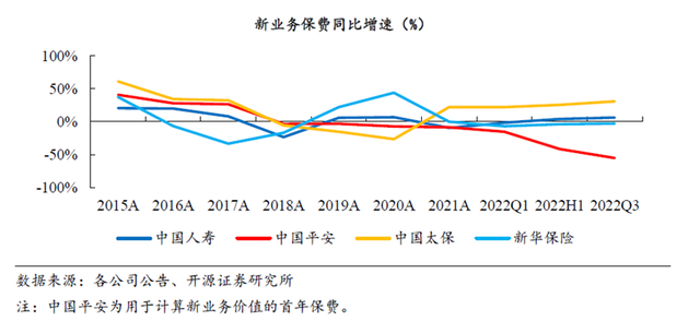 数据显示,2022年前三季度平安的新业务价值同比下降26.6%。同期,中国人寿下降比例为15.4%。