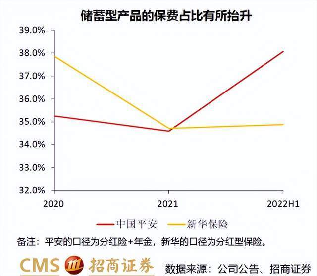 产品角度,平安的储蓄型产品占比明显提升,但总保费却仍在下降。