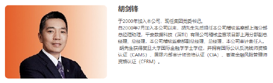 6月26日金融一线消息,中国平安官网“管理团队”显示,中国平安审计责任人兼稽核监察部总经理胡剑锋已出任中国平安党委书记。