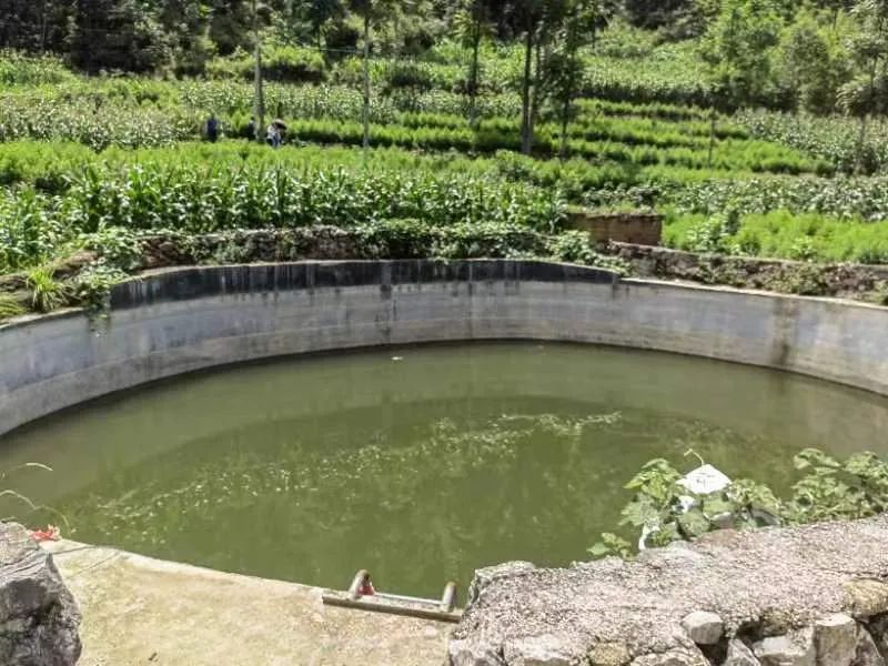 平安扶贫办工作人员根据该处特殊地貌和老乡们描述的历次受灾情况,在确保一定冗余空间的基础上,制定了“三面光”解决方案。“这条大约400米长度的引水渠前后花了不到40天就完工了,现在从山上四处流下的雨水都会汇聚在水渠中,收集到不远处的储水窖。”吴支书介绍道。今年6月中旬,笔者来到新安村,站在水渠旁,看到水渠底部、渠壁两侧皆是平整的水泥抹面,与水渠隔着一条乡间小道的圆柱形蓄水池,在当地去冬今春持续特旱的情况下,还蓄着接近三分之二的水。吴支书自豪地介绍:目前的蓄水完全可以足够保障附近土地灌溉、牲畜饮水,邻村的人都羡慕我们。