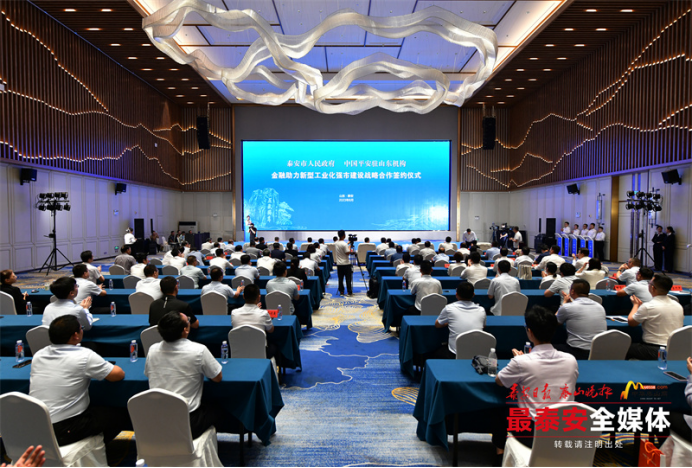 8月17日上午,泰安市人民政府与中国平安驻山东机构金融助力新型工业化强市建设战略合作签约仪式举行,市委书记、市人大常委会主任杨洪涛,平安产险副总经理刘铮,市委常委、秘书长张颖,市委常委、副市长姜宁,市新型工业化强市建设推进委员会副主任、党委书记、一级巡视员宋洪银出席活动。