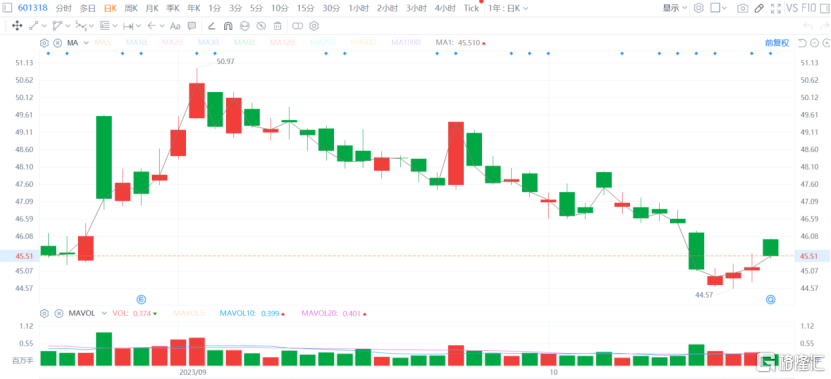 此前,在10月18日其公布2023年中期权益分派方案,拟每10股派9.3元人民币,今日10月25日为派息日,合计派发现金红利168.4亿元人民币。25日,中国平安A股收涨0.73%,H股收涨0.25%。