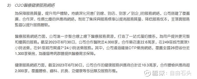 在线下医疗资源方面,截至2023年9月末,$中国平安(SH601318)$拥有北大国际医院等6家线下医院,并布局17家健康管理中心,通过整合供应方,已实现国内百强医院和三甲医院100%合作覆盖。现在平安的医疗健康生态体系已经臻于完善。