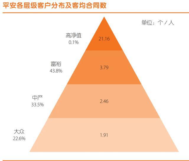 对于普通人来说,纯粹出于保障需求,买两三个保单就到顶了,但有钱人不一样,平安特意设计了一个人群金字塔。
