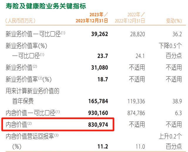 虽然2023年平安的寿险和健康险内含价值9301.6亿,同比增长6.3%,但其实没有这么多。