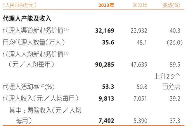 截止到2023年12月31日,平安的寿险代理人数34.7万,同比下降22%。