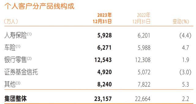 所以这些人平均买了21.16个产品,中国平安2023年的客户数量是2.32亿,比年初增长2.2%,意味着有23.2万这样的客户。