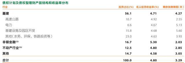 理财产品账面值2274.61亿,占比4.8%,同比下降1.3个百分点。