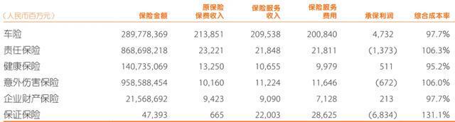 另外年报里面还说了,现在小微企业的还款压力仍然比较大,所以保证保险业务的成本率131.1%,同比上升了5.5个百分点,意味着这一项的亏损是68.34亿。