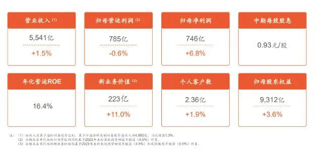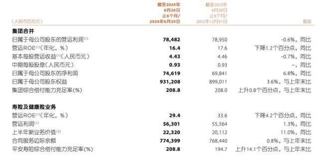 2024年上半年,中国平安录得营收4950亿元,同比微增1.26%,实现归属于母公司股东的营运利润784.82亿元;年化营运ROE16.4%;归属于母公司股东的净利润746.19亿元,同比增长6.8%,增速实现转正。