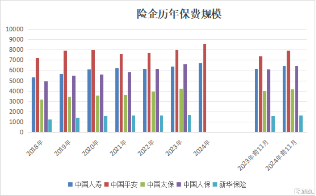如今伴随新的一年即将到来,该如何看待保险板块后续的潜力,也是市场关切的议题所在。近日平安公布了2024年年度保费,接下来不妨就此复盘公司过去一年的表现,并对新一年予以展望。