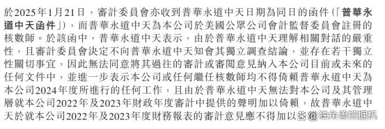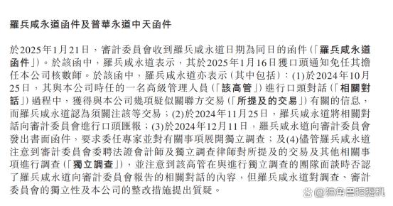 2024年12月11日,普华永道向审计委员会发出了书面函件,要求委任专家对所提及的“关联交易”进行独立调查。