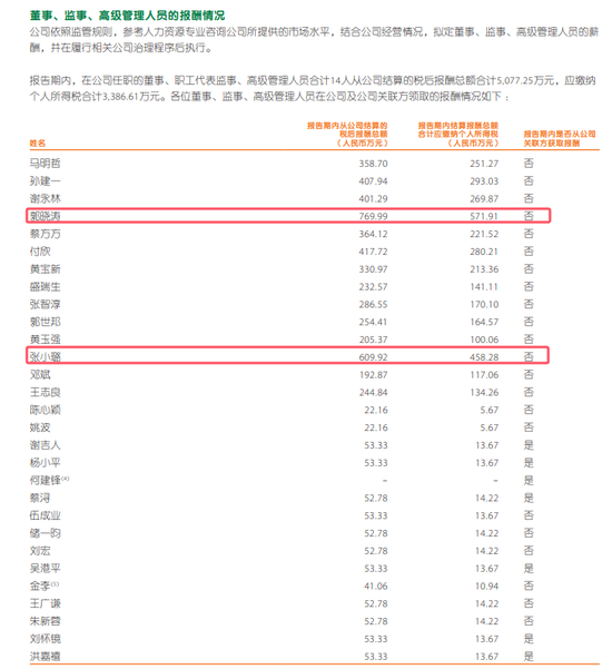 税前年薪过千万的还有合规负责人张小璐,为1068.2万,不过在今年3月份,张小璐已经辞职。中国平安董事长马明哲为609.97万。